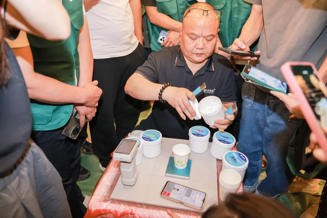 为了让参会者更直观地感受纯氢化白刚玉桶装彩砂的卓越性能,现场特别设置了实操演示环节。蒋工亲自上阵,为大家进行示范操作。他熟练地拿起工具,引导大家动手使用氢化彩砂进行擦洗,详细展示了该材料在瓷砖美缝中的高效施工流程。