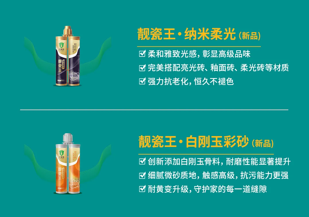 此次,交流会上我们还介绍了靓瓷王家族的新成员:纳米柔光、白刚玉彩砂。两款新品与经典款纳米轻奢共同构成更完善的产品矩阵,满足不同家居风格的多元需求。